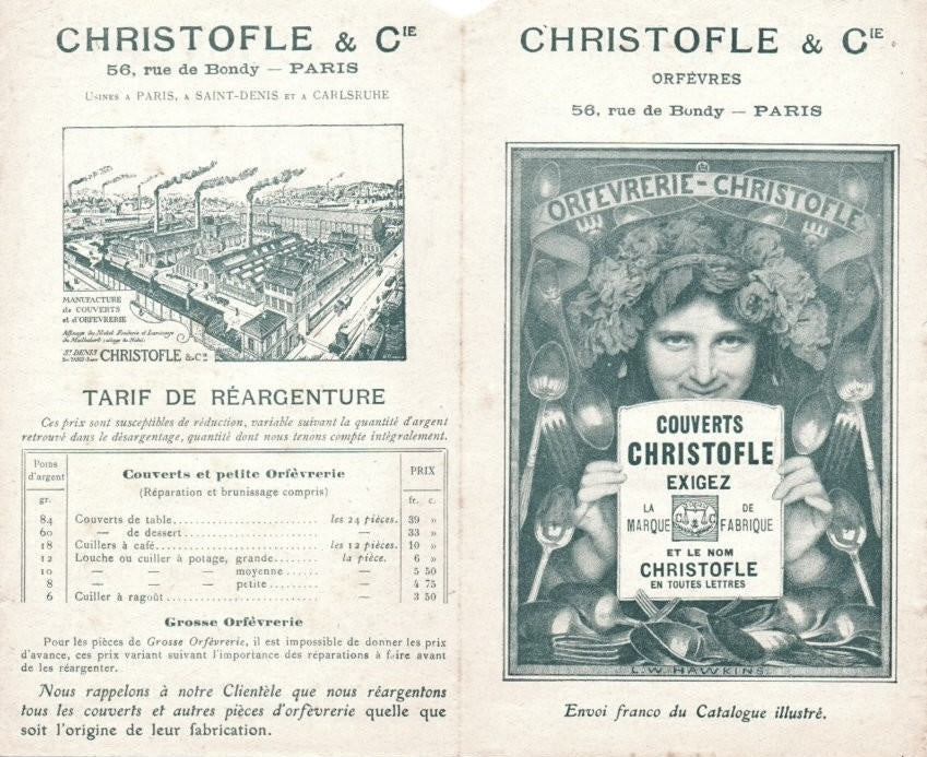 Anuncio antiguo de la maison Christofle, principios del siglo XX