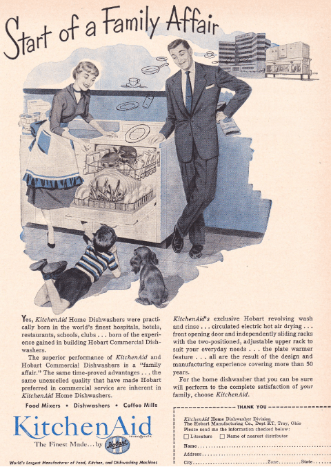 Anuncio de KitchenAid de los años 50 promocionando el lavavajillas para uso doméstico