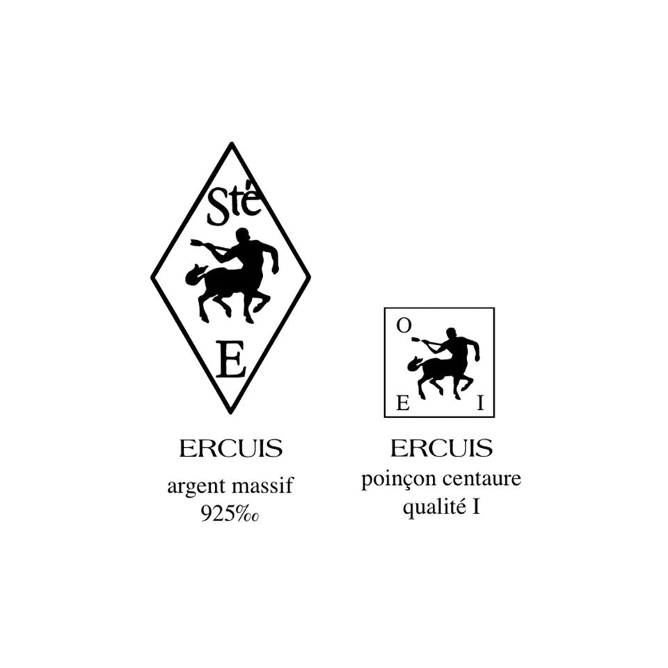 - The hallmark may be represented by the ‘poinçon carré’, the official French contrast for ‘metal argenté’, or by indicating the percentage of silver with each number in a square. The Ercuis ‘poinçon carré’ includes a centaur with the initials ‘OE’ identifying the house, and the indication of quality in Roman numerals: I or II, depending on the microns of silver in the piece.